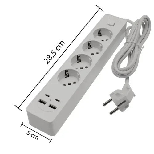 Prelungitor 3 in 1 Jortan ,2m lungime, 4 prize, 2 port-uri USB, 2 port-uri USB-C