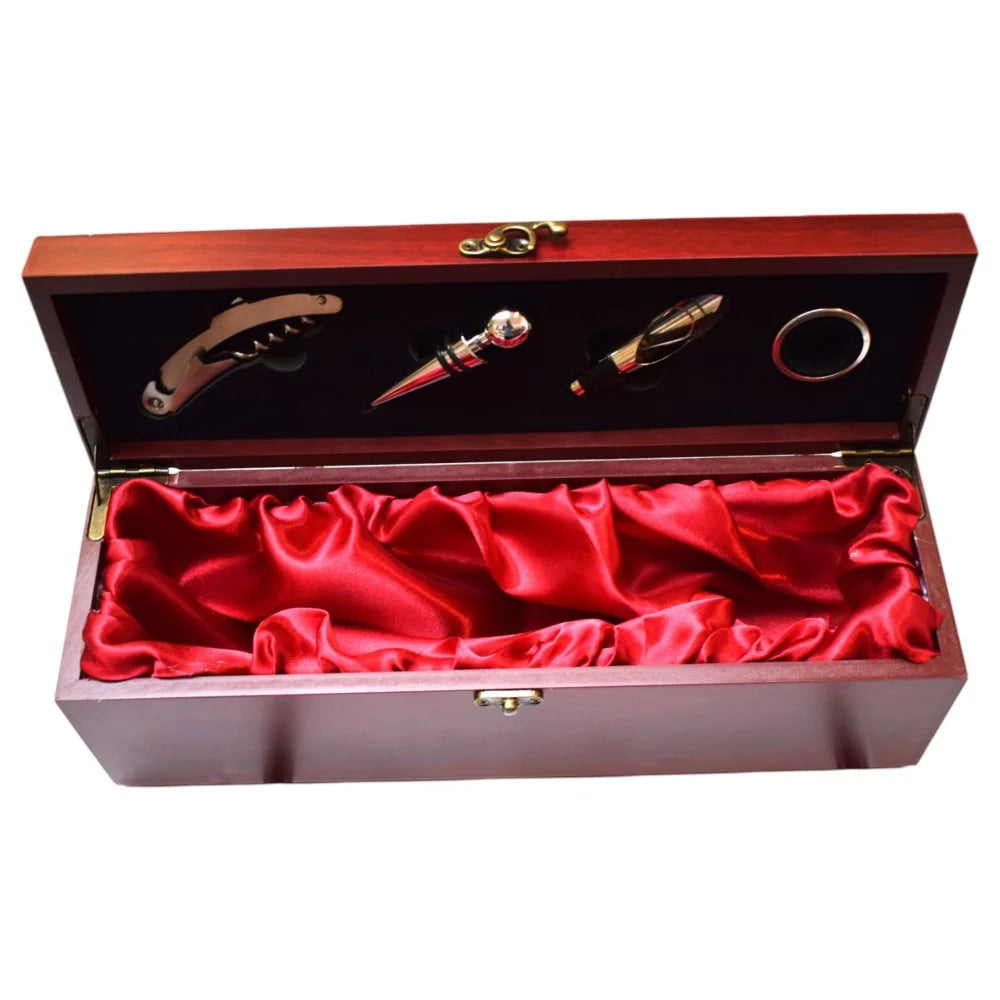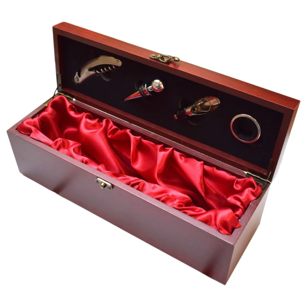 Cutie cadou pentru o sticla de vin din lemn cu 4 accesorii incluse