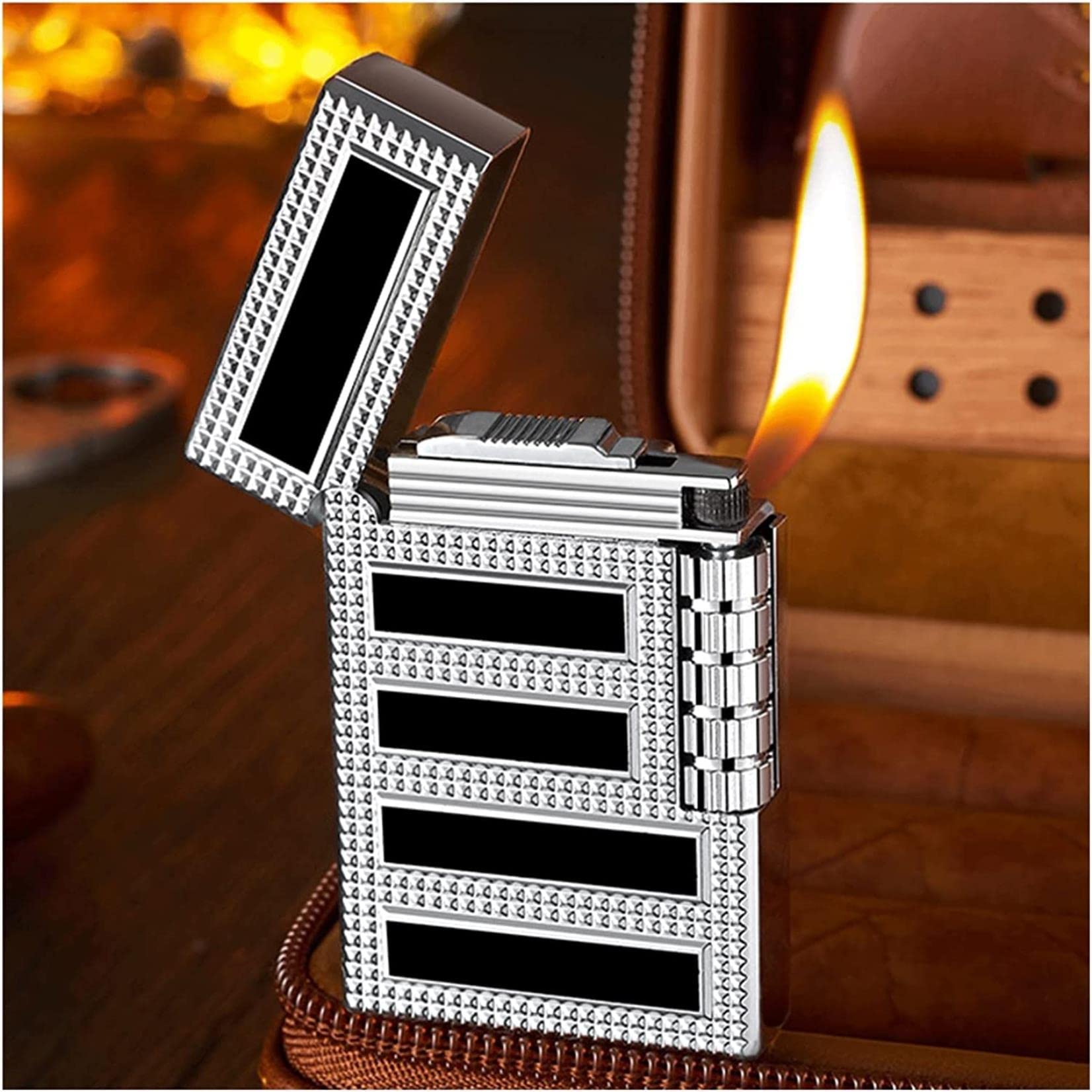 Carcasa din otel face celebrul sunet pe deschidere, care este caracteristica pentru acest tip de bricheta.