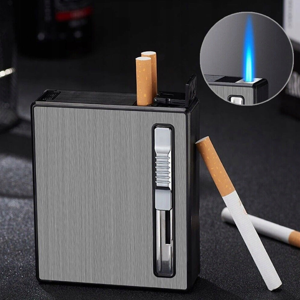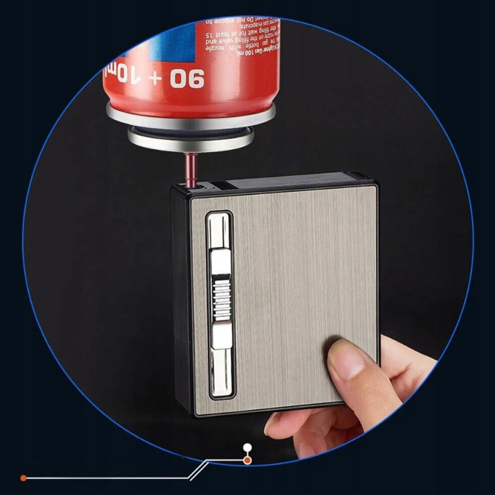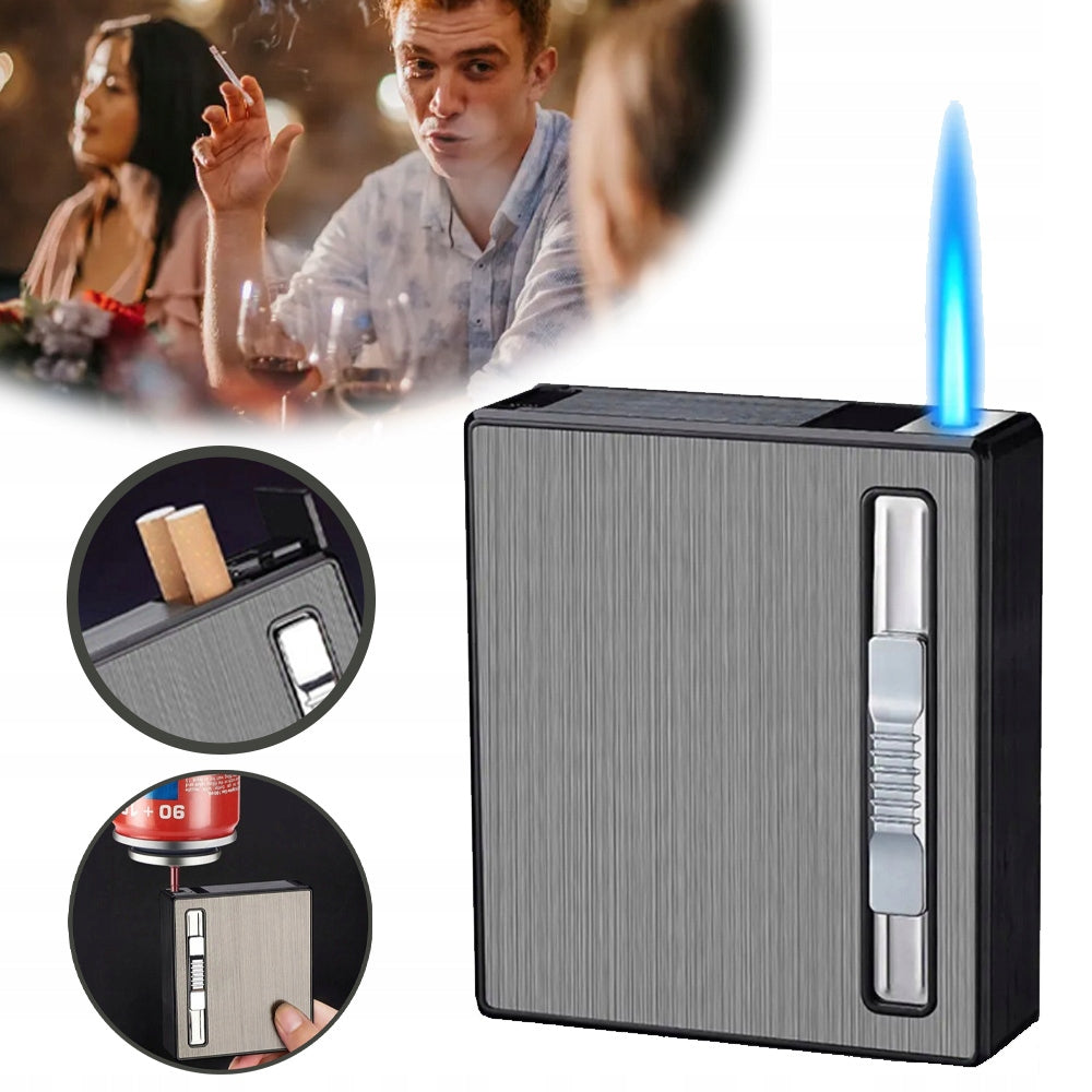 Tabachera cu bricheta antivant pe gaz, depozitare 18/20 buc de tigari scurte