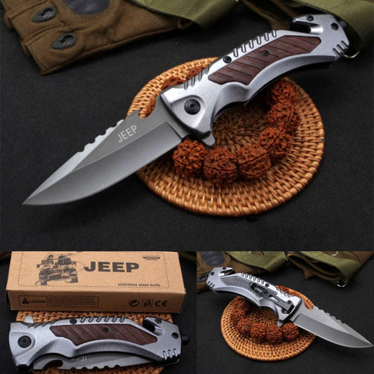 Briceag de Colectie JEEP, 22 cm, clema prindere la curea, desfacator sticla, taietor centuri si spargator geamuri