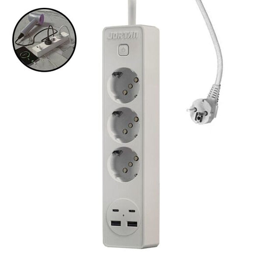 Prelungitor 3 in 1 Jortan ,2m lungime, 4 prize, 2 port-uri USB, 2 port-uri USB-C