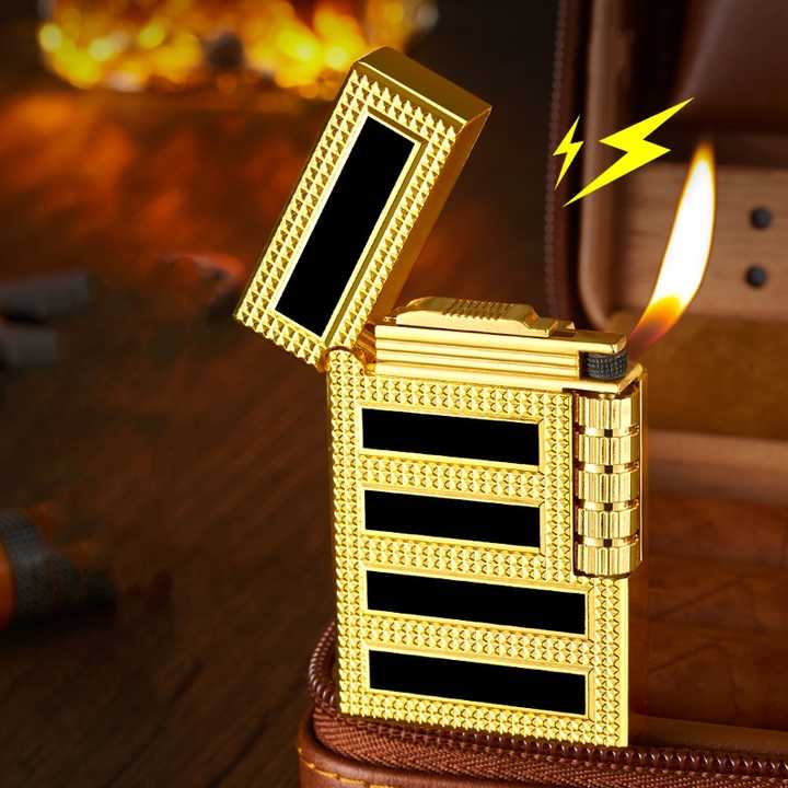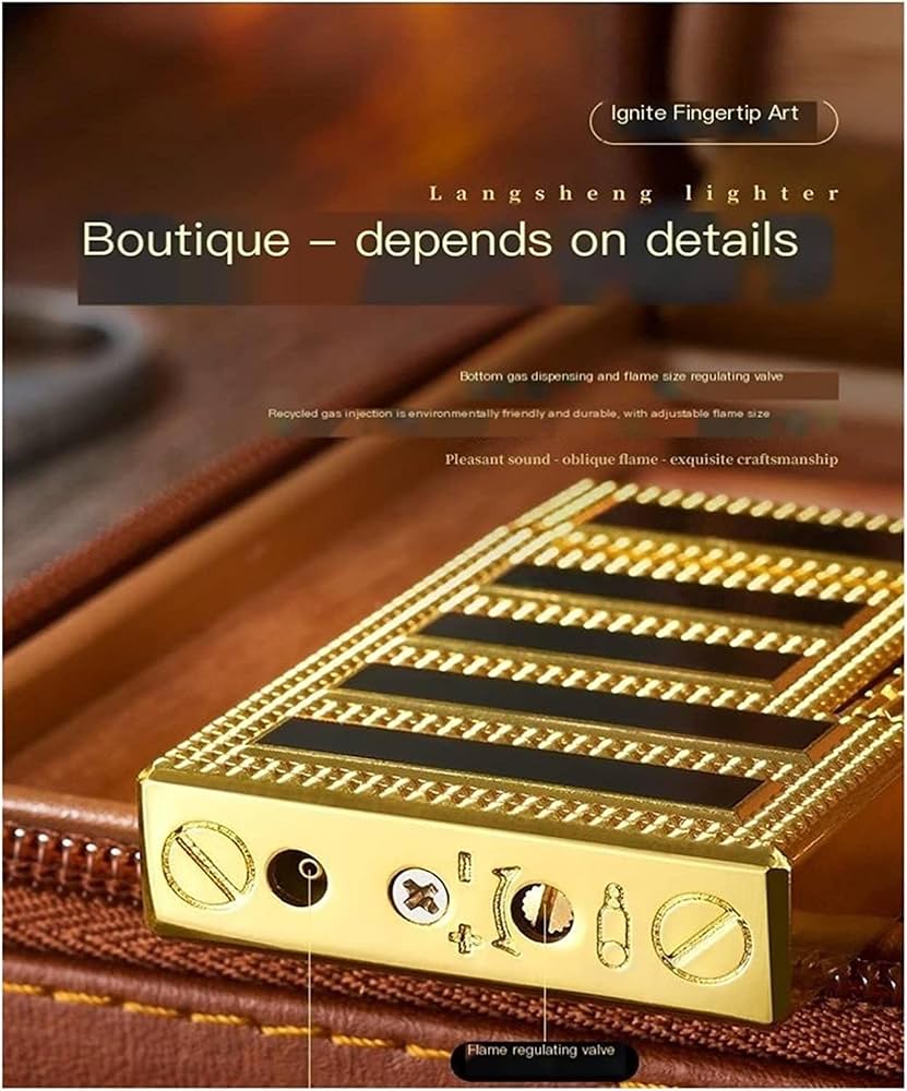 Bricheta metalica Black & Gold reincarcabila cu gaz cu aprindere pe piatra lateral