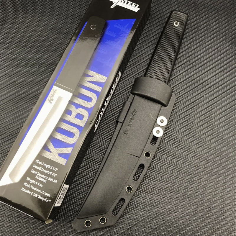 S-a dovedit a fi incredibil de popular în rândul armatei, unde este apreciat pentru greutatea sa ușoară și profilul discret, la fel de mult ca durabilitate și potențialul de tăiere. Kobun are vârful „American Tanto” întărit emblematic Cold Steels, făcându-l foarte rezistent la îndoire sau rupere, deoarece este întărit de toată grosimea coloanei lamei (care ajunge aproape până la vârful lamei). În ciuda profilului său subțire, Kobun-ul, adânc în carouri, Kray-Ex este proiectat pentru a oferi mânerul Kray-Ex rezistent și rezistent la contur. mână.